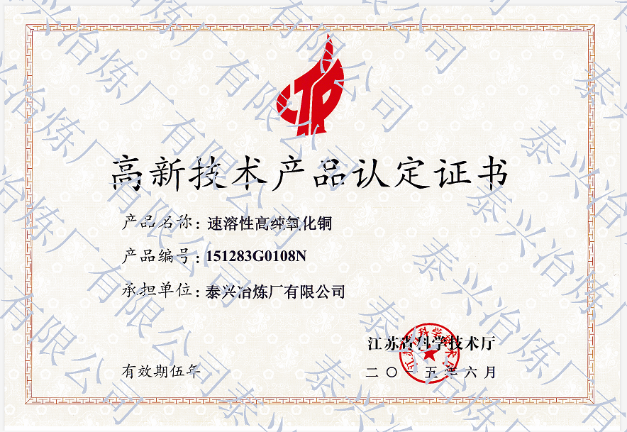 是我國《工業(yè)氧化亞銅》、《工業(yè)堿式碳酸銅》、《工業(yè)活性氧化銅》行業(yè)標(biāo)準(zhǔn)的起草單位